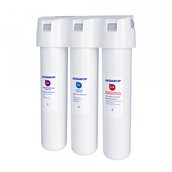 Картриджи последовательно очищают воду и от видимых примесей, и от растворенных. Первый картридж задерживает более крупные частицы, а каждый последующий - более мелкие. Чем больше ступеней - тем лучше фильтр очистит воду: поймает более мелкие видимые частицы ржавчины, песка и ила, успеет захватить из воды максимум растворенных примесей - хлора, нитратов, тяжелых металлов и других.