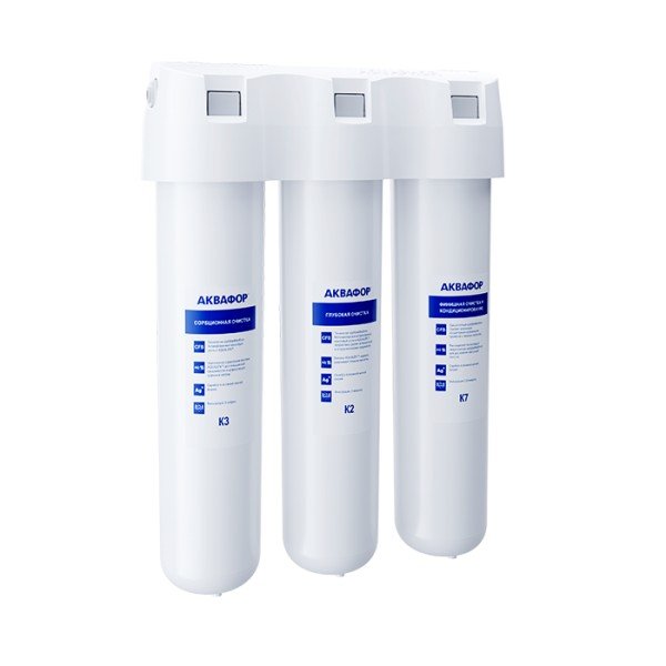Обратноосмотические фильтры используются для абсолютной защиты от накипи, т.к. полностью устраняют соли жесткости из воды.нетЧисло ступеней очисткиКартриджи последовательно очищают воду и от видимых примесей, и от растворенных. Первый картридж задерживает более крупные частицы, а каждый последующий - более мелкие. Чем больше ступеней - тем лучше фильтр очистит воду: поймает более мелкие видимые частицы ржавчины, песка и ила, успеет захватить из воды максимум растворенных примесей - хлора, нитратов, тяжелых металлов и других.3МинерализацияПроисходит после финишной очистки воды. Необходима прежде всего в фильтре обратного осмоса, поскольку такой фильтр полностью устраняет из воды все примеси, в том числе минералы. Минералы добавляются в оптимальной концентрации - для пользы и привычного вкуса воды.нетПостфильтрацияФинальный этап очистки воды: картриджи постфильтрации удаляют самые мелкие механические частицы и кондиционируют воду, придавая ей более приятный вкус.нетНакопительная емкостьОбычно нужна в фильтрах обратного осмоса. Глубокая фильтрация требует времени. Чтобы Вам не приходилось ждать, пока вода наберется в чайник или кастрюлю, почти во всех моделях используется накопительный бак для чистой воды или другая емкость. В стандартном фильтре обратного осмоса под мойку воды в баке достаточно для семьи из 5-6 человек.нетФильтрующий модуль в комплектедаОтдельный краннетДавление в водопроводе не более, атмМаксимальное давление воды на входе в систему, при котором возможна стабильная работа фильтра.6,5Ширина, смОбратите внимание на габариты фильтра, и измерьте, сколько свободного пространства в предполагаемом месте установки.26,0Глубина, смОбратите внимание на габариты фильтра, и измерьте, сколько свободного пространства в предполагаемом месте установки.9,0Защита корпуса от гидроударовдаИсходная водаЖесткая вода – вода с избытком минеральных солей. От нее появляется накипь в чайнике, известковый налет на сантехнике и разводы на посуде. Мягкая вода – та, в которой мало минеральных солей. Нет накипи в чайнике и разводов на посуде. Фильтры для мутной воды и фильтры от ржавчины, как правило, имеют несколько стадий очистки и дополнительный полипропиленовый картридж. Он задерживает механические частицы ила, песка и ржавчины и защищает картриджи более глубокой очистки.мягкаяУстраняет мутностьМутность водопроводной воды может говорить о том, что в ней много мелких механических частиц. Важно, чтобы в фильтре был установлен дополнительные картридж механической предфильтрации (полипропиленовый) - он продлит жизнь остальным картриджам более тонкой очистки.нетУстраняет ржавчину, бурый осадокЛюбой фильтр под мойку удалит из воды крупные и мелкие частицы ржавчины. Некоторые фильтры имеют повышенный ресурс по железу: они дольше служат в такой воде, поскольку лучше подходят для удаления из воды железа и механических частиц ржавчины.нетЗащита от бактерийВсе проточные фильтры в той или иной степени защищают от бактерий. Например, добавление серебра препятствует их размножению. Это стандартная степень защиты. Если в семье есть дети, пожилые люди или аллергики, воду рекомендуется обеззараживать, то есть полностью удалять микроорганизмы. Повышенную защиту от бактерий дают фильтры с половолоконной мембраной. Это пучок тр